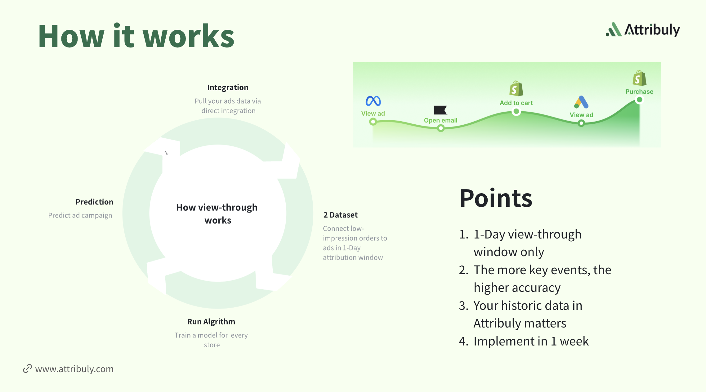 Start Measuring: Deploy the model in 1 week and start seeing complete attribution data in your Attribuly dashboard.