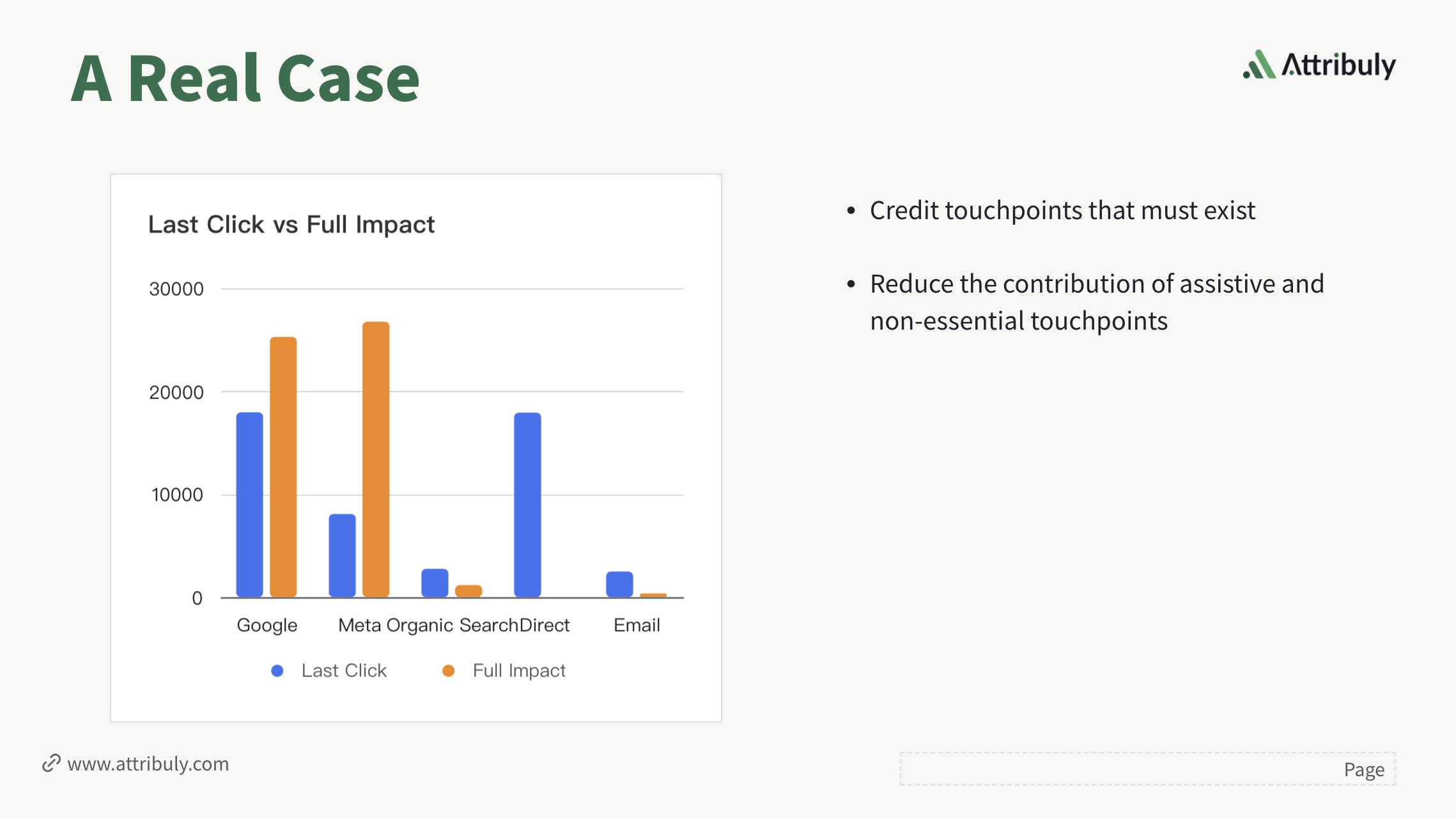 The Full Impact model uses incremental impact analysis to assign credit based on real influence. Here’s a simple example from our slide: