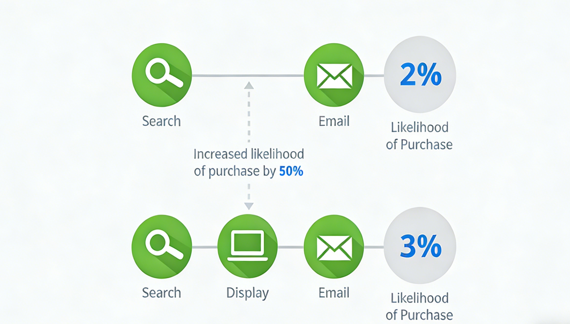 Our model evaluates the unique contribution of every touchpoint by calculating how much it increased the probability of conversion. It reveals the actual value of your upper-funnel marketing and cross-channel interactions, ensuring fair credit distribution.